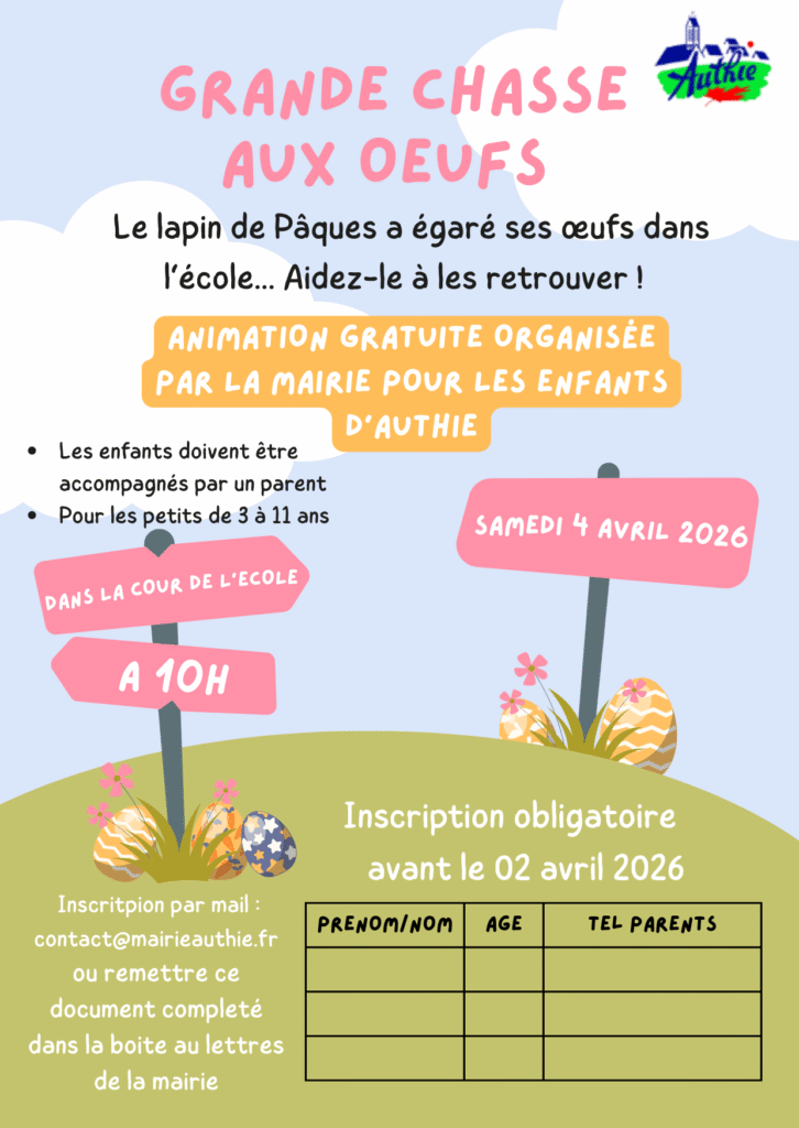 Inscription par mail : contact@mairieauthie.fr ou remettre ce document complété dans la boite aux lettres de la mairie